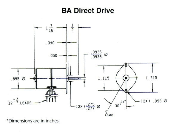 Rated torque is 0.625 ounce-inches and normal operation temperature rise is 30oC.