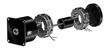 | Construction and Operation "Can-stack" stepping motors consist of two stacked sets of toothed stator poles and circular coils and a cylindrical ceramic permanent magnet rotor with radial alternating north and south poles. The number of rotor poles is equal the number of stator teeth in each sets of poles. The stator pole coils are energized, the rotor will align itself between the two equal stator fields. Typically the number of poles is such that the motors have step angles in the range of 7.5 to 20 degrees. A single step of the rotor is the result of a change of magnetic polarity of one set of stator teeth. This change in polarity is brought about by reversing the direction of current flow in the coil associated with those teeth. The rotor motion for a single step with no load applied is that of a damped oscillation. The damping characteristics are modified by frictional and inertial loading, the sequence in which windings are energized, and the electronic damping in the drive circuitry. |